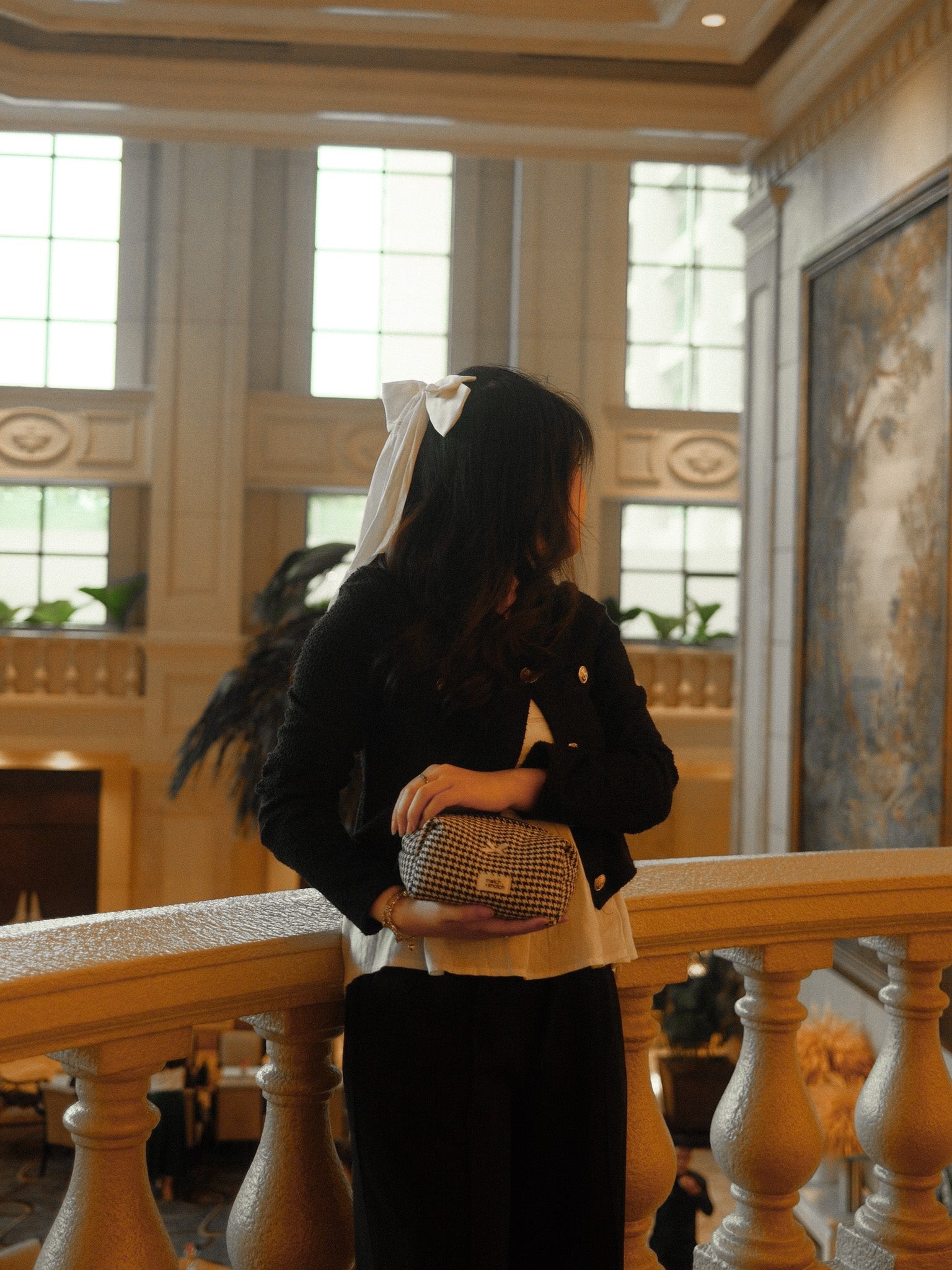 Blair has that classic Upper East Side vibe. Her black-and-white cotton blend tweed feels soft to the touch, and the white ribbon adds a small, playful detail. She’s easy to carry and moves with you throughout the day, giving your everyday a quiet sense of polish and style without trying too hard. Structured yet soft, the fabric reflects Blair’s love for timeless pieces that are polished but never overdone. Light and easy to carry, Blair keeps your essentials close while embodying the effortless, polished style Blair Waldorf is known for.