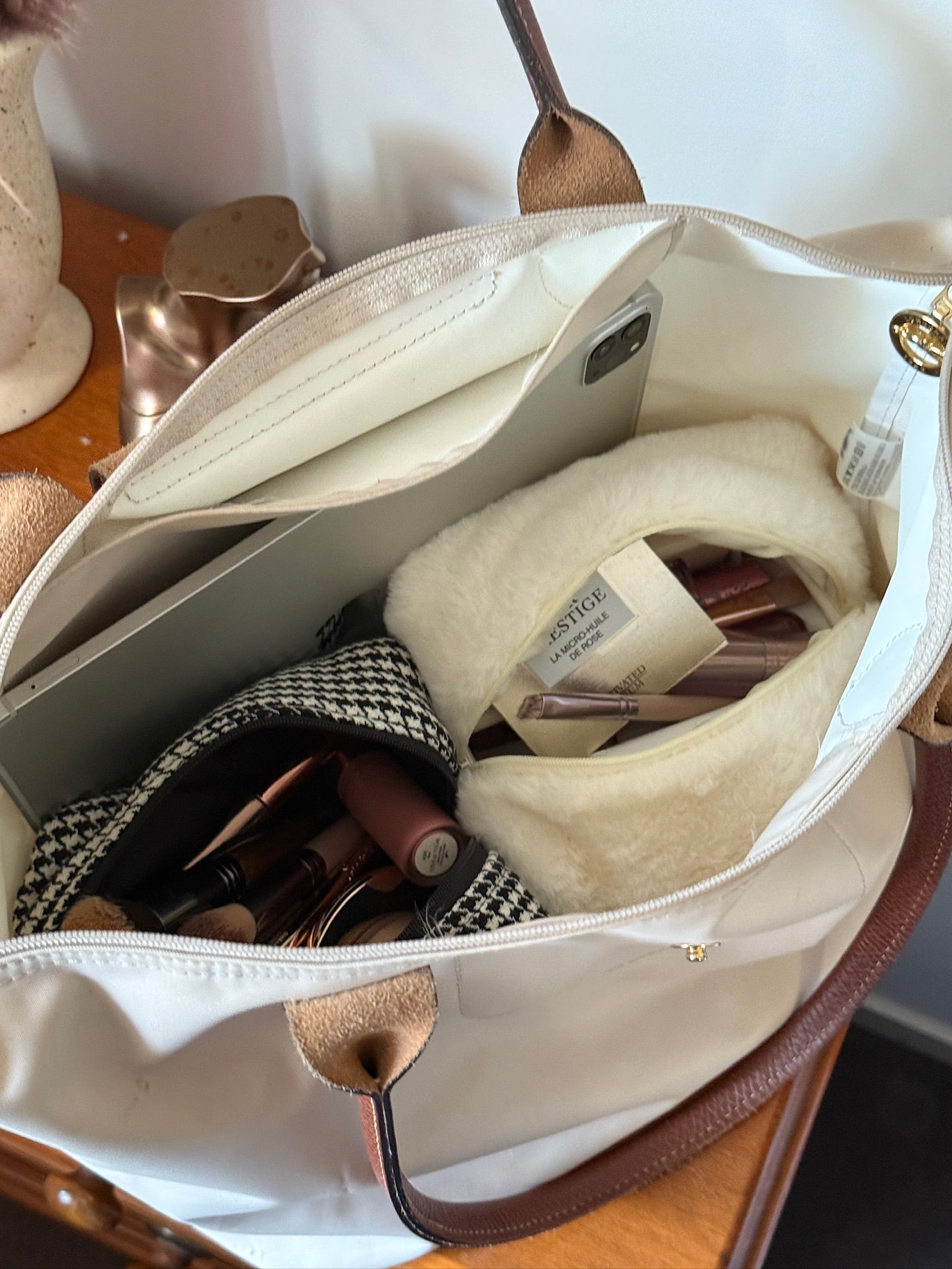 The inner lining is black with a silky feel, and the outer is classic tweed with a white ribbon detail. To keep it looking its best, gently hand wash the outer tweed with cold water and mild detergent. Avoid bleach to protect the fibers. Lay flat to dry to maintain its shape and texture. If ironing is needed, use low heat and place a cloth between the iron and the tweed to prevent damage. For a thorough clean, dry cleaning is also recommended.