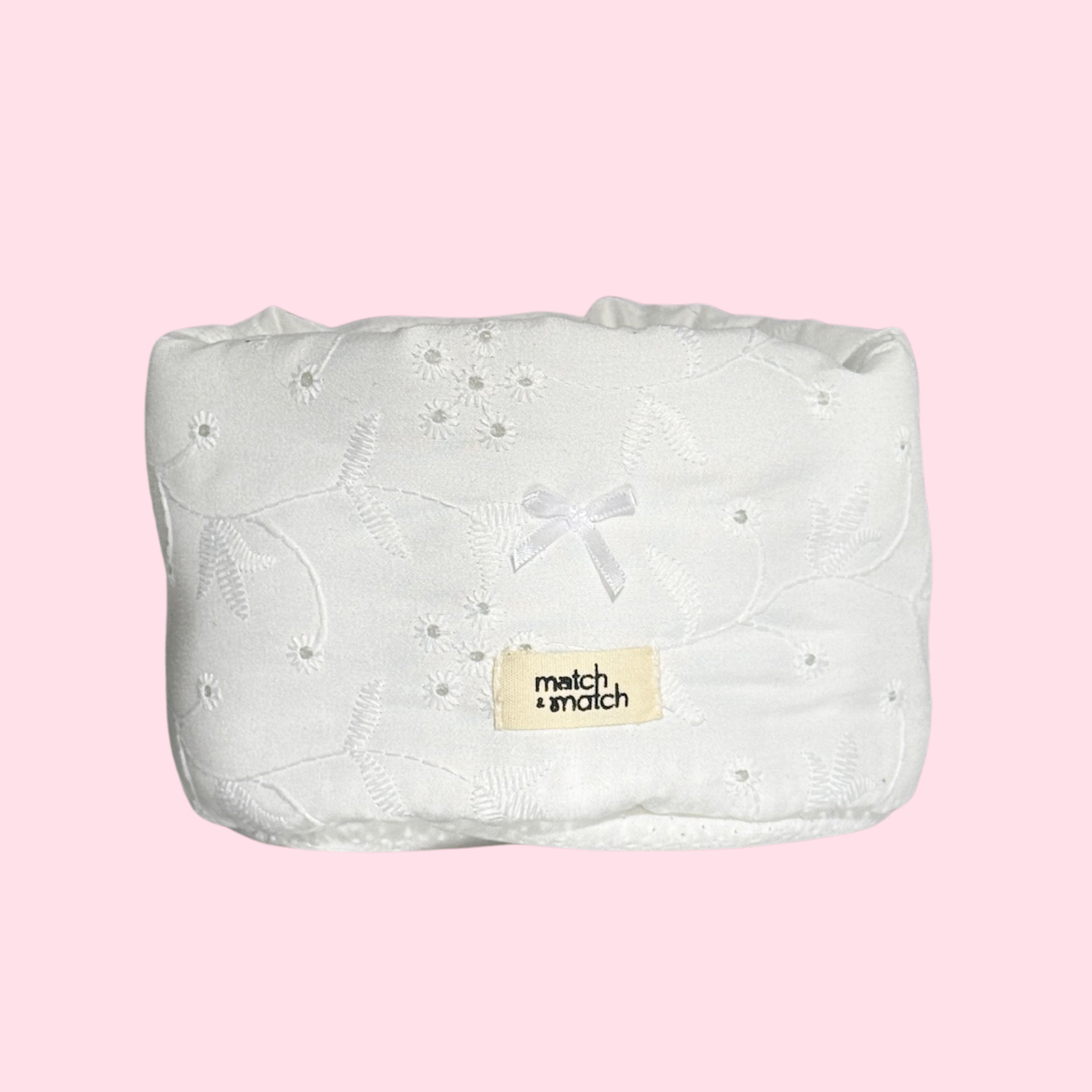 The Francesca Pocket is made from pure white eyelet fabric, featuring delicate textures and intricate patterns that create a light, airy feel. Subtle yet refined, it brings a touch of quiet elegance to your space, making even simple, everyday moments feel thoughtfully styled.