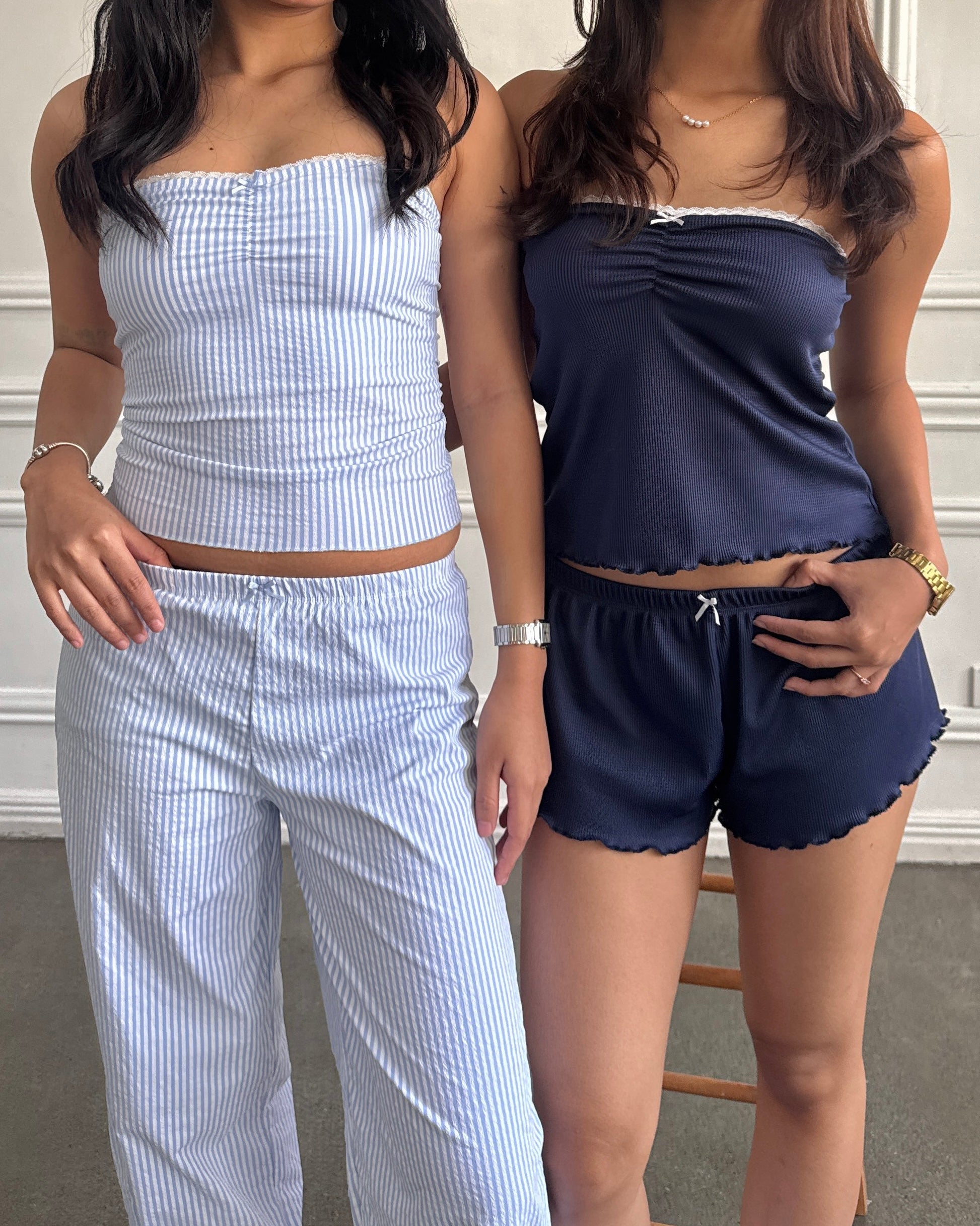 Our loungewear is made from the softest, comfiest fabric, the kind that feels like a warm hug you can wear. It’s cute, cozy, and made to stay with you through every little moment of your day. Soleil for your soft mornings, Cielo for your gentle afternoons, and Lumiere for your dreamy, quiet nights.